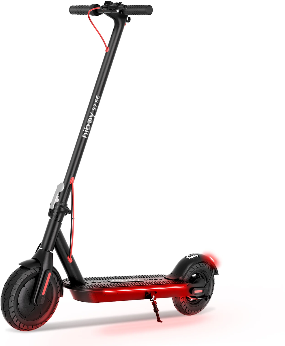 Experience the Hiboy S2 SE electric scooter, perfect for commuting or school runs. With a powerful 350W motor, 19 MPH top speed, 17-mile range, and a 15% slope capability, it offers comfort and convenience with a wider rear fender and anti-slip deck.